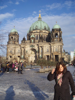 Nakon prilično dosadnjikavih komunističkih ostataka napokon smo došli na trg Gendarmennarkt više u mom stilu sa duhom povijesti, na kojem su dvije katedrale francuska, starija poč. 18.st. koju su izgradili Hugenoti i njemačka koja je danas muzej njemačke povijesti, gotovo su istovjetne, na trgu je i statua njemačkog pjesnika Friedrich Schillera, i koncertna dvorana. Prošli smo i pored Humboldtovog univerziteta, oko kojeg se obnavlja punom parom. Završili smo na Under der Linden i Museum Insel, prvo je avenija sa muzejima i ambasadama, a drugo je otok na kojem se nalaze brojni muzeji kao što su Pergamon muzej, koji sadrži kolekcije iz doba antike, pa sa srednjeg istoka…, zatim Altes muzej koji sadrži kolekciju umjetnina iz antičke Grčke, a zgrada je pod zaštitom UNESCOa zbog dizajna svojeg exterijera i interijera. Tu je i berlinska katedrala nedavno obnovljena i Lust garden- lijepi vrt koji je okružen muzejima. A najbolji dio je što je otok okružen rijekom Spree. Tu je završio naš obilazak i pozdravili smo se sa Berrijem. Preporučio nam je muzej DDRa kraj kojeg je i restoran sa tipičnim berlinskim jelima. Cure su otišle tamo na ručak a mi smo se kroz reastoran ušuljali u muzej i nismo platili ulaz. Muzej je zanimljiv jer je interaktivan, sve možeš dirat, svaku ladicu i ormar otvorit, a pokazuje život u doba komunizma, od uređenja dnevnog boravka, odjeće, stvari, tehnike, odmora koji su provodili, volim iteraktivne muzej ali me nisu pretjerano fascinirale te komunjarske stvari, pa ni zatvorska ćelija sa sobom za ispitivanje, već sam rekla da sam ja živjela u takvom režimu i to me ne fascinira.