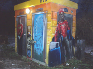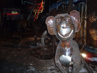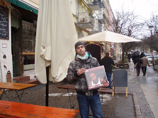 Burki i ja odlazimo prema Fridrichstasse i prema Orangenbergstrasse. Ulica je puna fenomenalnih lokala , nagovaram burkija da uđemo u jedan Zapata al on se ne da, nastavljamo dalje kad naletimo na neku komunu slikara, ulaz totalno neugledan a u dvorištu desetak straćara u kojima umjetnici, napljugani ko zmije stvaraju. totalno zanimljivo, malo me potsjetilo na Kristijaniju u Copenhagenu. Mjesto skroz zanimljivo,još zanimljivije skulpture. Na izlazu upoznajemo čovjeka koji je glasnik dobre nade, putuje Europom skuplja slike ljudi koje upoznaje. Odmah se skompao s burkijem i dogovor je pao: ovo ljeto dolazi u Hrvatsku pa će se naći s burkijem da mu i on da svoju sliku, jer su mu se skroz svidjele burkijeve slike koje mu je on pokazao na svom mobitelu.