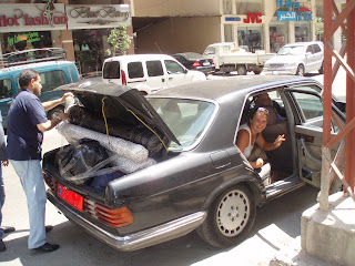 Oduševljeni hramom i puni poleta glavinjamo po gradu. Mislim da je ulaznica oko 8 dolara(12ooo LL). Grad nije ništa posebno osim što ima tonu mercedasa starih i novih po cest( ko da smo u Imotskom). Malo šetamo sukom, i odlučujemo nešto pojest. Naravno stajemo tamo di je najveća gužva i ljudi se okupili i nešto kupuju. Nekakvi zamotuljci punjeni mesom koje peče frajer drito pred nama. Nisu baš nešto, malo presirovi al smo to morali probat. Vraćamo se još kod babe na čaj i po stvari, koji smo tako brzinski suknuli da su nam sve jezici bridili, i jurimo na minibus koji nas već čeka. Sva sreća da odmah krećemo prema Beirutu jer se ovdje spremala neka oluja.