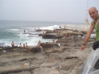 Gledamo malo cjenike na birtijama uz more skupo je, al smo odlučili se malo počastit pa odabiremo jednu uz same stijene Pigeon rocka sa krasnim pogledom. Pijemo sokove i lagano slinimo nad klopom koju konobari furaju okolo. Sve izgleda fenomenalno, neke salate s jajima i raznim povrćem, mesetina, plate s voćem- obilno i privlačno. Uzimamo meni i vidimo da im klopa uopće nije tako skupa u odnosu na cugu, i dajemo si oduška naručujemo klopu:fatiš, salata razna sa prepečenim kruhom na vrhu, lokalni specijalitet i panache salata sa šparogama, šampinjonima aričokama, jajima,i par vrsta humusa,(cijena klope 30 000LL)-mljac- ubijamo se i naravno par minuta poslije čučimo u wc jer nas i dalje pere ljevpro, al nije bed wecke su kraljevske, čiste i mirisne- tu nam ni naša trčkalica ne pada teško!!!!! Siti i sretni lovimo taxi do naše kraljevske rezidencije, malo šetamo po kvartu i kužimo da smo u nekoj crvenoj četvrti i pol sata nakon vrtimo se ko janjci na ražnju po krevetu jer je tak pakleno i vlažno za razliku od Sirije da se teško podnosi.