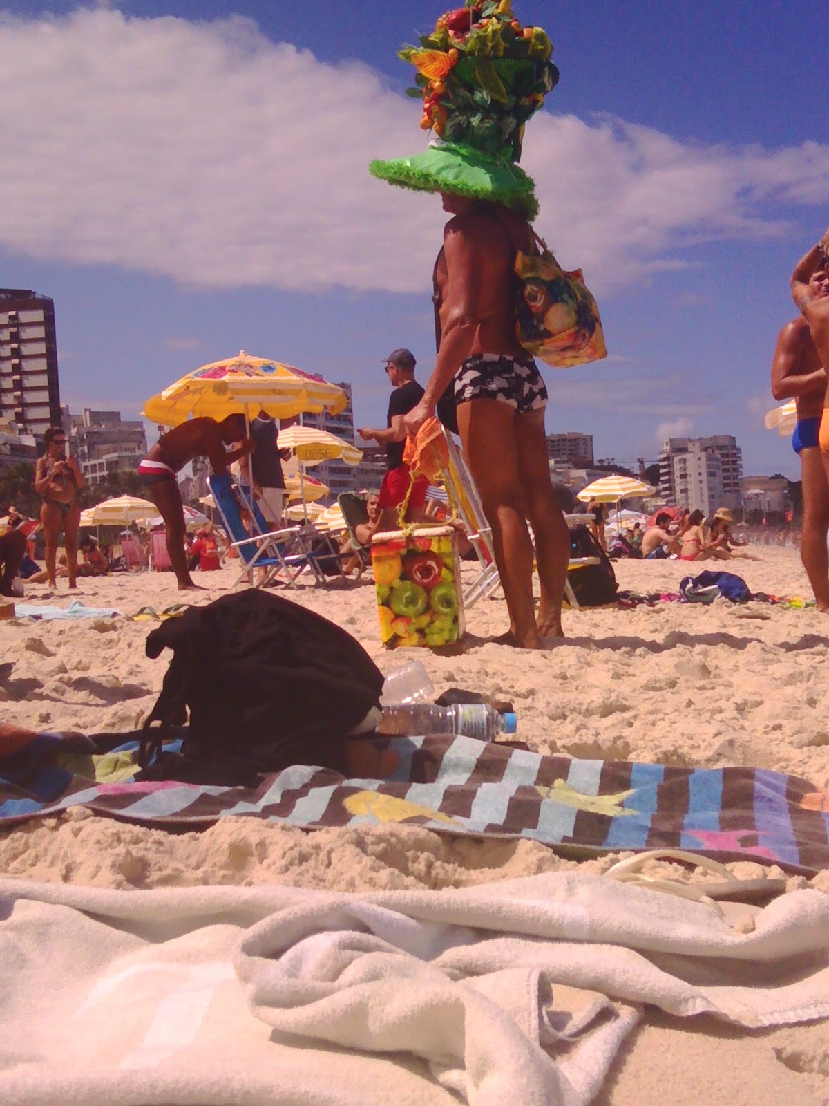 E, sad ide red uzivanja…plaza Ipanema…juuhuu. Vozimo se busom po cesti uz Copacabanu do Ipaneme, biramo sektor 9 i hicemo se na zupla. Odmah kupanjac, pa caipirinhe, pa shopping kod onih kaj hodaju po plazi s badicima. Upoznali smo i jednog simpa decka Portugalca koji je bio s nekim drvenim, nezanimljivim frendovima. Malo smo s njim pricali o mjestima gdje se izlazi jer je on u Riju vec par dana pa nam je preporucio jedan restoran u blizini Ipaneme gdje se jede pikanja, tradicionalno brazilsko jelo. I rekao da ima neki party navecer u Copa hostelu na Copi. Odmah nakon plaze smo ubole taj restoran Garotta de Ipanema, pikanja je zapravo sirovo meso koje peces sam na nekom postolju, za dvoje je kostala 105 riala, sto bas nije malo al posto su im porcije dobre racunali smo da se sve tri mozemo od toga najest. I tak je i bilo, meso je izvrsno, maznuli smo po jednu caipirinhu, uzivali u atmosferi jer je restoran bas neki ugodan, fini.