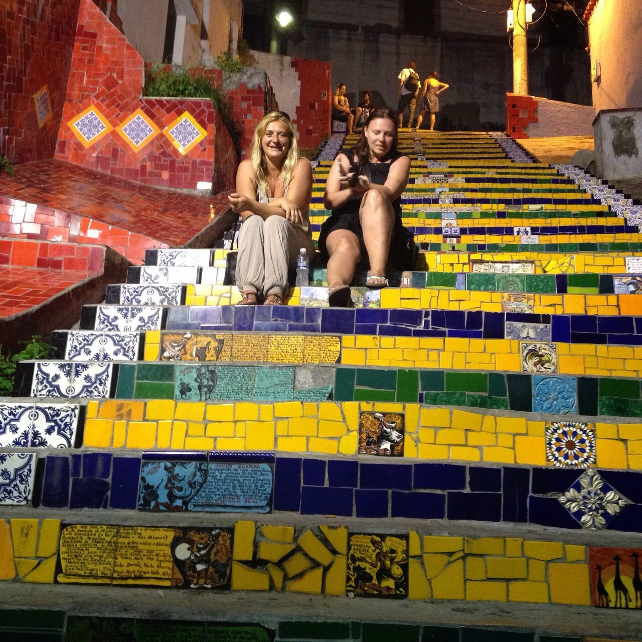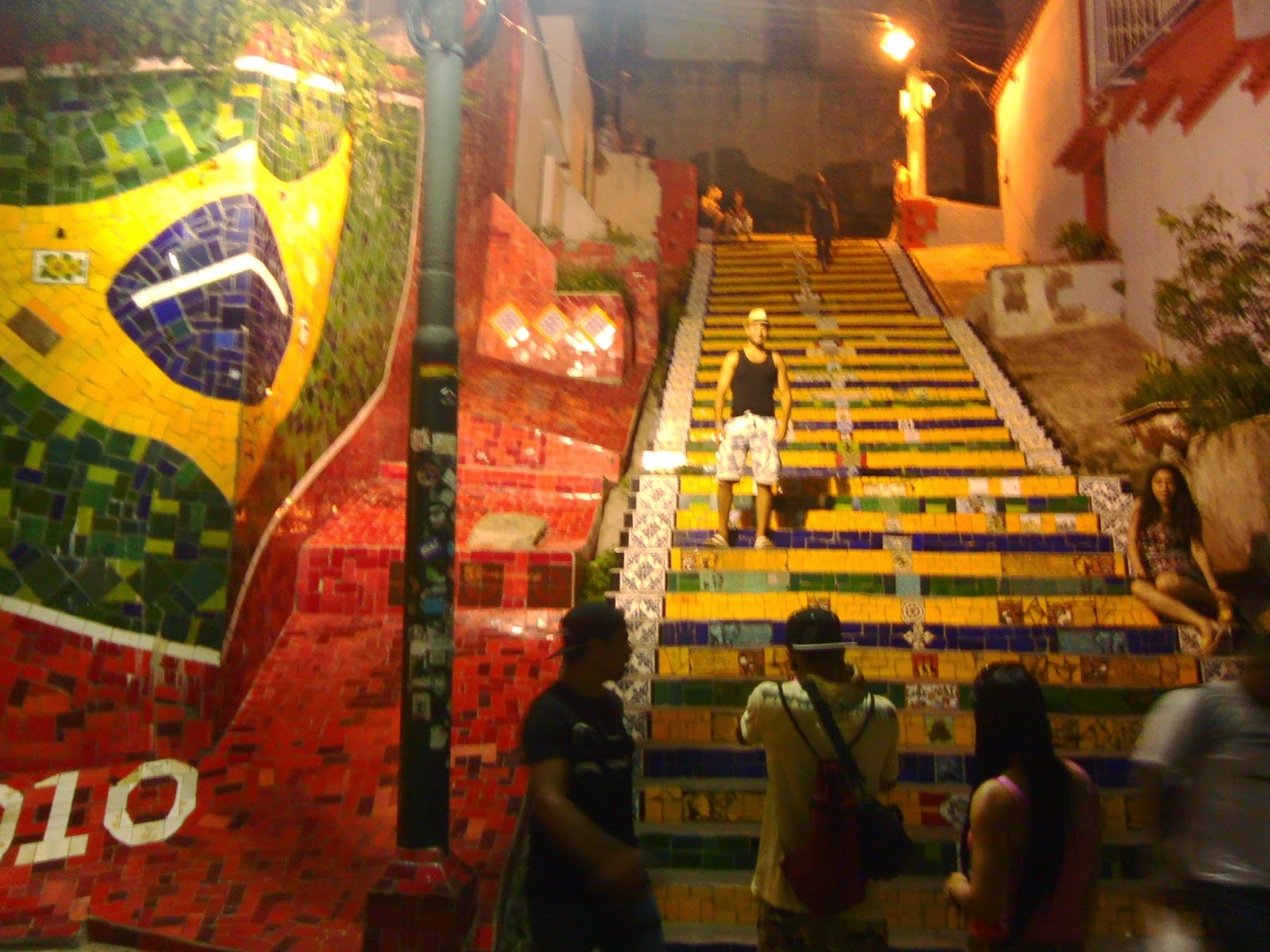 Popodne idemo metroom do Santa Terese, starog dijela grada, na vrhu brda koji je poznat po stengama koje je umjetnik Selaron ukrasavao svakakvim plocicama gotovo 20 godina. Neke pločice je i sam oslikao. Kvart je na vrhu brda pa se penjemo, D i ja zaostajemo, naslikavamo zgodne kucice i na kraju ubodemo neki fini kolac u totalno lokalnoj birtiji, kakve obozavam. Lucky se vratil po nas pa smo se morale pozurit, a i nije bas siguran kvart. Uglavnom lijepo je a stenge su mrak. Necu puno pricat, fotke sve govore. Nastavili smo prema centru, koji mi lici na spanjolske i portugalske gradove, svako toliko neka crkva, ili muzej ili institut. Prosetali smo do glavnog trga na kojem je Opera, pa pjesackom zonom do Avenide presidente Antonio Carlos i tam smo na nekom slatkom trgicu popili caipirinhu. Jos smo malo bauljali okolo kad me moja instinktivna navigacija usmjerila prema Rua Mercado…skuzila sam neki muving i hrpu ljudi i nagovorila ekipu da idemo skicnut. I napokon neko mjesto sa hrpom birtija i restorancica….puno ljudi…svira muzika..plesu na ulici….mrak. Popili smo cugu i danas je Slajka bila kukac i cvilila da idemo doma. Ulovili smo neki bus blizu i vratili se, a ja se planiram preksutra kad sam opet u Riju vratit u ovaj kvart.