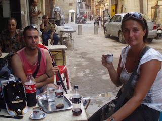 Na tržnici je hrpa dućana ali nismo baš našli neki štand sa jeftinom lokalnom klopom pa smo murjaka iz turističke policije pitali gdje ima klope. Frajer nas otfurao do nekih skupih turističkih restorana i još je tražio bakšiš. Pa koji si ti kurac policija kad i tebi moram davat bakšiš, da ne povjeruješ, ta je policija samo fraza i slika za turiste, prava uloga joj je nikakva a ima ih hiljade. Tu mi je puknuo film pa smo se digli iz reste gdje nas je otpeljo i odbauljali u neke uličice jer smo znali da tamo mora biti neke lokalne birtije. Naletili smo birtiju di je frajer peko jetrica- to je bio prvi susret sa omiljenom nam klopom koja nas je pratila kroz cijeli Egipat ( a i jedina ima naznaku mesa, i to za sitne pare). I tako se mi najeli jetrica i salate i onih njihovih lepinja sve skupa za 15 kn/ 15LE, pa sjeli nakavicu i šišu u drugu lokalnu birtiju di nas je frajer kvalitetno oženio jer nismo pitali cijenu unaprijed(20 kn 3 kave i šiša). Svaka škola dobro dođe , od onda prvo pitaš cijenu, pogodiš se ak ti je skupo i sjedaš ili ideš dalje.