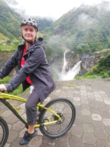 Budim se rano, spuštam na doručak koji je solidan, i bacam se u potragu za biciklom. Tražim neki povoljan za 5$ , jer mi se ne da plaćat 10 $ za bajk. Uspjela sam skombinirat nekaj u jednoj agenciji za 25 dolara bajk i sutra rafting. Nabrijana na avanturu skačem na bajk i krećem prema vodopadima. Da odmah priznam, nije da sam neki vrhunski biciklista, ali cesta prema vodopadima je uglavnom nizbrdo, a natrag bih se trebala vratiti kamionetom koji će voziti mene i moj bicikl, tak da ne bi trebalo biti većeg napora. Spuštam se prvo iz grada prema brani na rijeci Pastazi, vožnja mi ide super