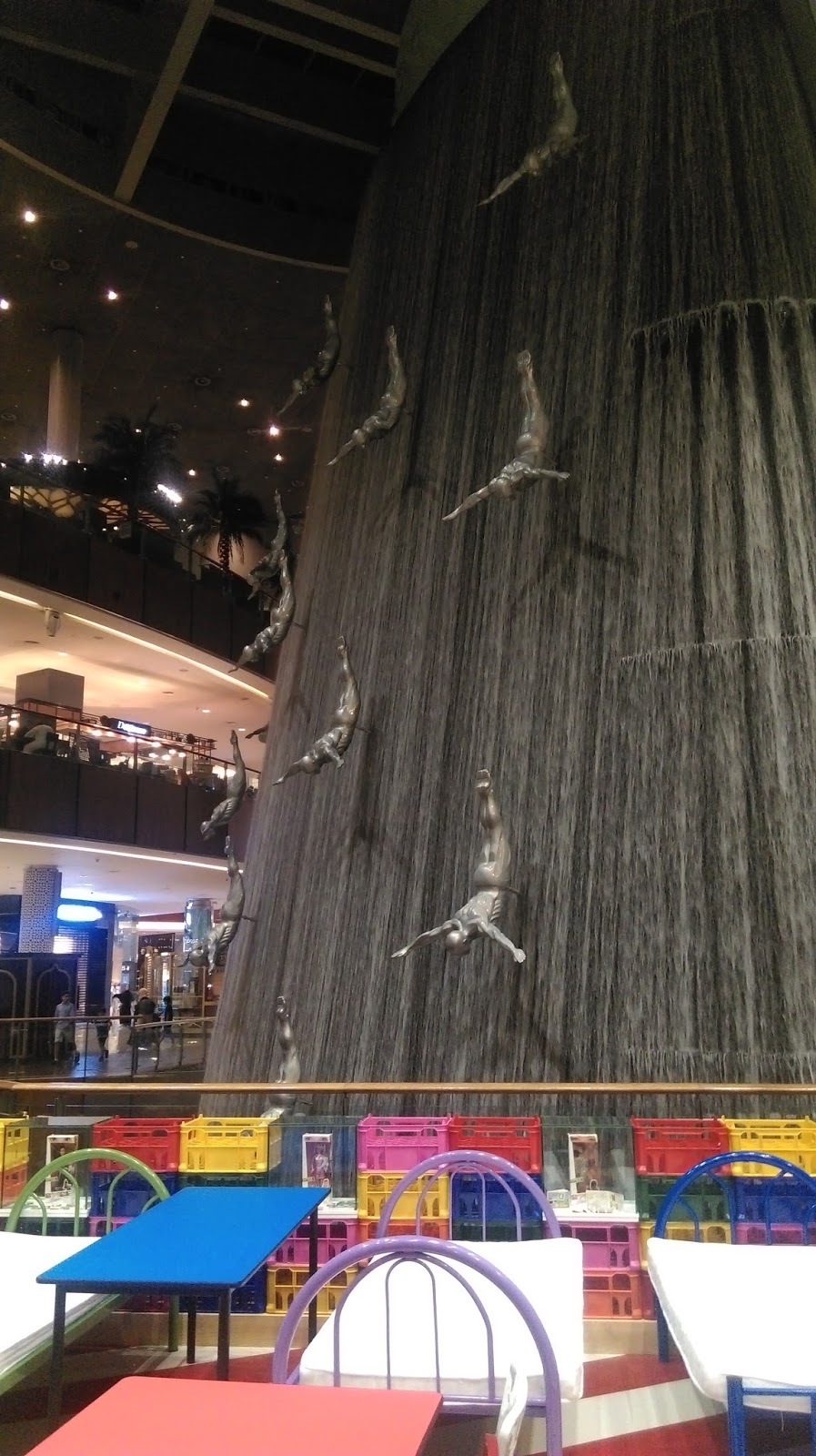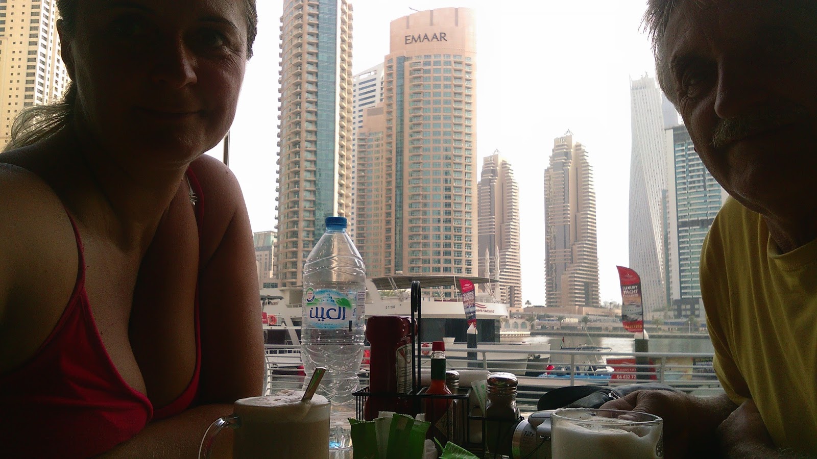 Odmah sjedamo da nekaj pojedemo i popijemo, malo se aklimatiziramo i poravnamo. Popili caramel frapuccino u Starbacksu..kao pravi turisti amateri, a terasa s pogledom na Burj i Operu i jezero…nice.