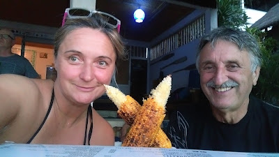 Stari grintavac bas nije odusevljen, treba mu malo vremena da skuzi vibru, al sredit cu ja njega. Uzivamo u zalasku, cuga, klopa opet nasi goreng i mie goreng, pivica, i reagge ritam.