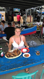 Vracćamo se u pečenjaru i dok čekamo svoje ribe ispijamo hladnog pivkana Bintang. Pol kile rakova, pol kile lignji i 800g snapera…opet ubijanje, viri nam iz ušiju klopa, al ne damo se. To su nam prvi posteni obroci po ovoj zemlji, i uz to jos i vrhunski. Stari je legao na plazu, a ja napravila jos jedan djir setnje uz more i onda haklam neke dečke na parkingu da nas otfuraju do hotela da ne moramo hodat tih par km. I dogovorimo vožnju, ma sve se da dogovoriti, uz mali osmijeh i sitne pare.