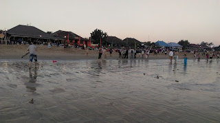 Napokon sam dosla na svoje, duga pješčana plaza za šetanje i razmišljane, oceaan koji mi zapljuskuje bosa stopala, zvuk valova. Jedino kaj bas nije mirno, zbog tih restorana. Nekako mi stalno dojam prenapučenosti po Indoneziji, nije mi tak bilo ni u Mexicu, ni u Tajlandu.