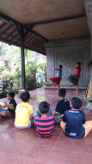 Dižemo se malo ranije, kavica nas već ceka na stolu, naručujemo palačinke i omlet i voće, omiljeni nam indonežanski dorucak. Sinoć smo sam dogovorila prijevoz za 500 000 rupija do Gilimanuka, ima oko 4 sata voznje. Jutros rentamo skuter da možemo sto vise obici, jer imamo fore do 13-14h, tada krećemo na trajekt. Skuteri su im mrak, idu ko metak, pale iz prve i uz brdo super vuku, ja na takve nisam navikla, moj se gasi na semaforu a uz brdo moram spolegnut da se uspije popet. Obilazimo palaču, koju preuređuju, pa se ne moze ući u svaki dio, neki dječaci uce tradicinalni ples u palači pa malo gledamo. Preko puta palače je tržnica, tu se najvise zadržavamo, uvijek su mi trznice fetiš na putovanjima, raznolikost boja i mirisa, egzotično voće i povrće, pileće glave, parene haljinice, suveniri, začini…napokon kupujem suvenire, za svoje curke neke topiće i kratke hlače kaj svi tu furaju, narukvice i Budinu glavu za terasu. Ima prekrasnih ukrasnih predmeta od drva, po tome je Bali i poznat, teško je odoljeti kupovanju, al tko bu to teglili po ruksaku.