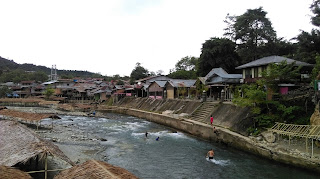 bacam cijeli fotosesn sa njima, vracam se na jos jedan kupanjac i uzicam gumu od kamiona, da se par puta spustim niz brzake..skroz je fora spustanje. Oblacimo se i picimo kroz selo do vodopada, setnjica vodi cijelim putem uz rijeku, i nije nimalo naporna.selo je nacickan kucicama, svaka ima neki svoj biznis: restoran, stand, ducancic, turisticku agenciju. Raspitujemo se malo za cijenu izleta a ispada da nam je nas gazda dao najbolju cijenu.