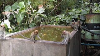 Vrlo su usluzni i ljubazni…treba se cjenkat s njima ali ne spustaju previse cijenu, al mislim da nisu prevaranti ko oni arapski taxisti. Skidamo se u badice i odmah se bacamo u rijeku…na kupanjac..cista je i brza. Lezim u vodi dok mi se brza voda prelijeva preko tijela i skuzim da se mice drvece na krosnji, kad ono neki ogromni majmuni sivi, gledamo ih, al nemam fotic da ih snimim, pratim ih prema drugoj strani obale, kad tamo cijela obitelj onih najmuna kaj se smucaju po hramovima, tu bauljaju po drvecu, kopaju po smecu, nisu napasni.