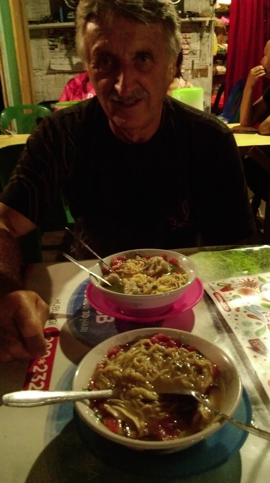 Nastavljamo put uz rijeku, sad vise nema kuce vec je oko nas prasuma, rijeka je nabujala od kise koja je pala negdje u brdima, prasuma je oko nas, usput prolazimo kraj dva vodopada, i kako vec pada mrak vracamo se natrag. Ima slatkih restorana na tom putu, i sutra pada vecera u jednom. Danas nismo tamo jeli jer smo se htjeli sto blize vratiti prije nego sto padne mrak. Odlucujemo pojesti neku juhicu s noodlsima..mislm da je MAE…nesto …probat cu nauciti. Izvrsne su im juhe, jednu smo vec pojeli na autobusnoj u Binjaiju, ta je bila s kokosom, ove s piletinom i meat ballsima…ali izvrsne sve..i prilicno sarf. Juha ipak ne pokriva u potpunosti apetit, pa jos u nasem restoranu kresemo po jednu palacinku s bananom i milk shake.