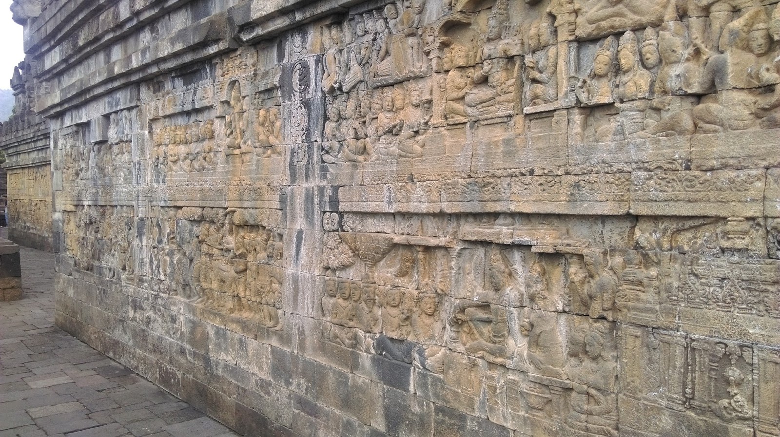Za danas imamo dogovoren pick up za hramove Borobudur i Parambanan u pol 8. Idemo u nabavku rolica i pohanaca i voća na plac, pa na doručak kraj bazena. Pijemo kavicu i čekamo frajera, naravno da ga nema ali sno navikli da je tu vrijeme relativan pojam. Ipak se nakon druge kave i 40min čekanja dižem pitat di je zapelo, kad frajer čeka na recepciji par metara dalje, da se nitko nije sjetio doći po nas ili dići dupe da vidi…nevjerovatno su opušteni, i to mi se zapravo čak i sviđa. Smijemo se na kraju svih troje, idemo solo s driverom, što je bas super. Vozi nas prvo do Borobudura, budističkog hrama iz 9 st.koji je pod zaštitom UNESCOa, kazu najveći budistički hram u JI Aziji. Nekako sam prestala ispaljivat od sreće na hramove i kulturnu baštinu, vise se veselim prirodi. Ali neke stvari moraš vidjeti kad si negdje. E bas to je Borobudur. Renoviran je dva puta, prvi put u 20st. ,pa nakon bombaškog napada. I još ga je nekoliko puta zatrpao pepeo nakon Merapijeve erupcije. To nije umanjilo njegovu ljepotu, Ima nekih 10tak terasa sa izrađenim reljefima skroz u krug a na vrhu su stupe. Penjemo se i istražujemo okolo. Na kraju jos odšećemo do muzeja, u kojem naravno kao ni u jednom muzeju bivše kolonije nema skoro nista. Nas driver nas vozi nekim alternativnim putem jer sam ga zamoila da vidim Merapi, mislim da je to najaktivniji vulkan na Javi, ali oblačno je i niš se ne vidi. Vozi nas dalje do Prambanana, drugog najpoznatijeg hrama na Jawi, isto pod zastitom UNESCOa, ali je ovo hinduistički hram, izgrađen u 9 st, ima 240 hramova, od kih su tri najveća Sivin, Brahmin i Višnu hram. I hramovi izvana imaju reljefe s različitim prizorima, čamce, majmune, bogove. A u svakom je jedna statua. Ovaj hram obilazimo malo brze, i driver nas vozi dalje na aerodrom. Stižemo debelo prerano, pa tražimo neki warung ili stand da popijemo čaj. Sjeli smo bas kod neke drage tete, malo popričali s njom, i sjedili nekih dve vure kraj ceste, već smo se udomaćili, pokupili njihove navike.
