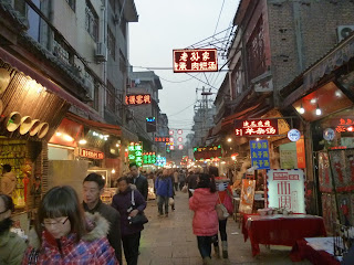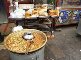Skuzila sam da Bell tower i Drum tower ima u svakom vecem kineskom gradu. Doduse ova dva sam mogla slikat na bilo kojoj bausteli i reci da su to tornjevi. Nastavljam dalje u muslimansku cetvrt, koja je sve samo ne muslimanska. Hrpa standova sa klopom, suvenirima, suhim vocem i zacinima, mali restorancici…nista tu ja ne vidim muslimansko. Cetvrt vrvi zivotom…puno ljudi na cesti i svi nesto zvacu..odmah se bacam na istrazivanje hrane, prvo sam nasla kod nekih babaca zamotuljke punjene razlicitim povrcem, pa sam kod njih onda maznula i juhu od povrca. Pored tog je bio neki restoran di kuhari kuhaju i peku neku juhu sa staklenim rezancima i mesom, odlucila sam da bu to sutra na meniju, jer sam danas puna. Svuda su i standovi s nekim kompotima ili vocnim cajevima, stave suho voce u casu i to zaliju vrucom vodom. Nije lose iako nisam neki ljubitelj kompota. I za desert sam maznula pohanu bananu.