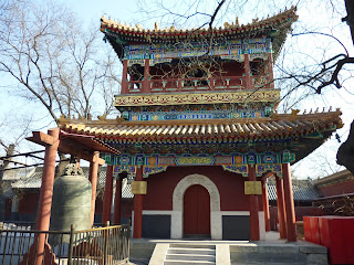 Podzemna me vozi do Ljetne palace koja je pod zastitom UNESCOa zbog uredjenog vrta…sto se sad i nije toliko vidjelo ali ova me je palaca puno vise odusevila od Zabranjenog grada. Mnostvo mjesta za istrazivanje, stijene kroz koje se provlacis ili se po njima penjes, hramovi, ulica Suzhou sa tradicionalnim kucama…vise je po mojoj mjeri i puno zanimljivije. Na kraju jezero koje je zamrznuto, i kad sam vidjela kako Kinezi bauljaju po jezeru odlucila sam se i ja spustit dolje, led je debeli nekih 30-40cm, a ispod vidis ribe kak se provlace po dnu, malo je i krckao pa mi je i adrenalin skocio…super dozivljaj sklizanje po zaledjenom jezeru. Sva sretna, kao malo dijete jer sam hodala po ledu izlazim iz palace i idem u kvart Hutong, poznat po niskim tradicionalnim kucama sive boje. Prvo odlucujem pogledat Bell tower i Drum tower koji nisu osvijetljeni pa cu fotke skinut s interneta. U ovom Bell toweru bi trebalo biti najvece zvono u Kini sto ja nisam vidjela.