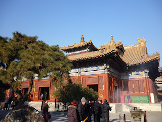 To je najveci lamasery u Pekingu, izgradjen 1694g., kao rezidencija princa Yonga izdinastije Qing. Hram se sastoji od vise vrata, hala i bell towera i drum towera….vidim da je u Pekingu obavezno imati ta dva tornja…i hrpe Budinih figura, od toga jednog ogromnog sjedeceg i jos veceg stajaceg Bude. Hram je lijep sa plavim krovovima, ali ono sto me posebno odusevilo je miris stapica i neka mirna atmosfera…pravi gust.