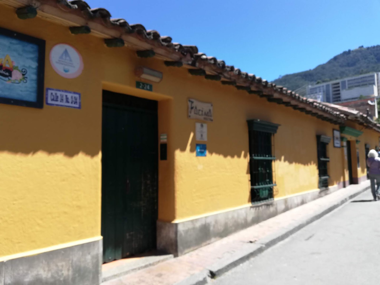 Pregovaram s nekim taxijem cijenu poprek 25000copa, čini se dobar deal jer sam poslije čula da deru i više. Vozi ko manijak…crveno svjetlo…kome to  treba, i za 20tak min dolazi do hostela Casa del sol u Candelariji, staroj četvrti. Hostel solidan, topla voda, malo slatko dvorište, fini doručak, jajčeka i tost i kavica, lokacija +5, u srcu Candelarie, sve na par sto metara. Frajer na recepciji precool, crnac, hoodica s kapuljačom prek glave, visok prek 2metra, brzina gibanja 2 m na sat, zgleda ko kriminalac a bubamara od karaktera, čak me poslije u gradu prepoznao i pozdravio.
