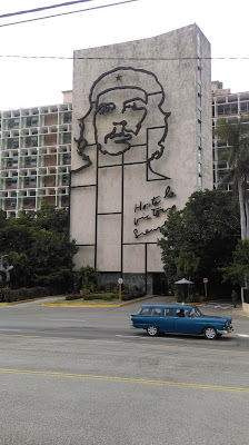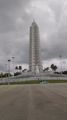 Tako da nemam problem s nalaženjem smjera jer uvijek imam pomoć. Šetam do Universidada de Havana sveučilišta, pa do staadiona i neke bolnice, ovdje je puno više zelenila i parkova, zgrade su raširene nije kao u Staroj Havani i Centru, uglavnom opet oronule vile ili obnovljene. Daleko je za hodati do Trga revolucije, i napokon nekako dolazim do tamo, noga me već ubija, a na trgu jedan spomenik Hose Martiju…još jednom revolucionaru, okolo Centralni komitet komunističle partije s likom Fidela, na drugoj zgradi glava Chea, pa Ministarstvo unutarnjih poslova, Nacionalno kazalište….sve čisti soc realizam, nezanimljiv u arhitektonskom smislu, zgrade obojane u plavo, bez imalo ukrasa, pravokutne, ko da sam doma u nekim dijelovima grada.