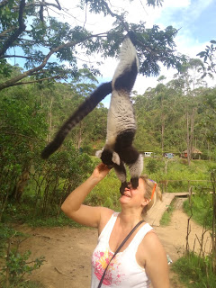 Uzivala sam gledajuci ih lako jedu lisce na drvecu, slobodni u divljini. Ova obitelj ima 5 indrija al mi smo vidjele samo 4. Skacu po drvecu, jedu i glasaju se. Bili smo oko 2 sata u sumi, to je najkraci krug, mozes i duze onda je karta skuplja, al nama je i ovo bilo dosta. Dali smo joj tips a cura nam je organizirala auto za 40000arija da nas vozi do Vakona lodge gdje je otok lemura i vrati natrag.