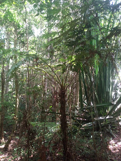 Prasuma nije ona prava kisna suma…vise kao decidous forest…dosta je prohodna, al ono kaj ne glupo, puno drveca je naknadno posadjeno nije izvorno, npr. borovi i eukaliptus. Kaze vodicica da su to drvo donijeli Francuzi. Izvorna je ona palma u obliku slicno i vakona drvo…nesto slicno ogromnim agavama i ta drveca cine sumu drugacijom od onih koje sam vidjela. Uzivam po tim prasumama svaka je po necemu osobita, samo mi je zal kaj nam je vodicica bila sutljiva, nije nam pricala o sumi…samo je pozurila do indrija. Brijem da su ovi africki vodici za k…. ko ona iz Kenije, da ne bi zivotinju vidjela ni da se spotakne na nju. Al ajde odfurala nas je do obitelji indrija. Indrije smo culi vec na cesti do rezervata, to je najveca vrsta lemura…crno bijele su boje. Na putu smo vidjeli i kameleona i svog prvog lemura koji je visio na tabli od parka.