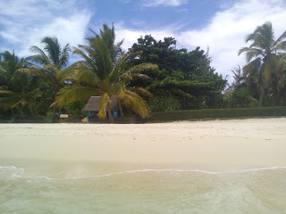 Kad sam se iskupala vratila sam se stazicom u nas hotel i odmah masku na glavu i ronjenje. Greben je nekih sto metara od obale, al je bila oseka i plitko a valovi o struja su jaki pa me malo frka da se ne zdrapam na stijene. Nisam prelazila na drugu stranu grebena jer se bojim sama radi morskih peseka, a na ovoj strani su koralji uglavnom unisteni, oni gaze po njima dok love ribe, tak da ima samo malo lijepih primjeraka, i to sam vidjela dva krasna crvena koralja, a i riba nema puno.