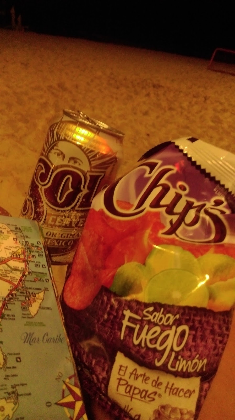 Kupujem pivicu ovaj put dobru Soli omiljeni cips od chillija i limete, izgeda da bu mi glavna hrana ovdje piva i taj cips.. ubacujem jedan nachos sa standa i sjedam na plazu…vec je debelo noc…more polako skida s mene brige i dileme…volim more.