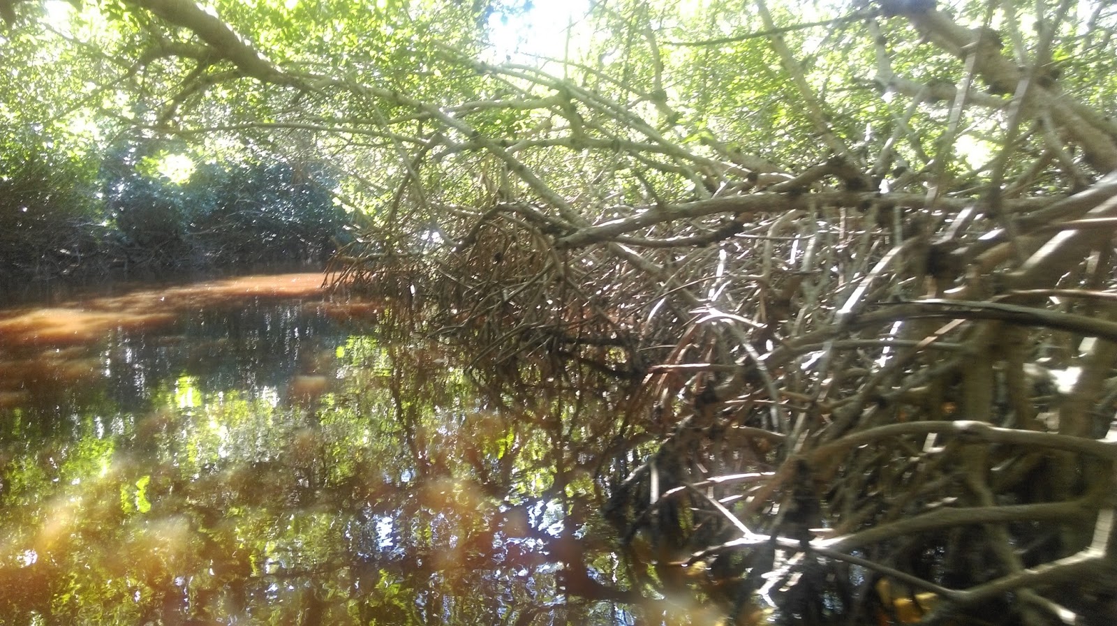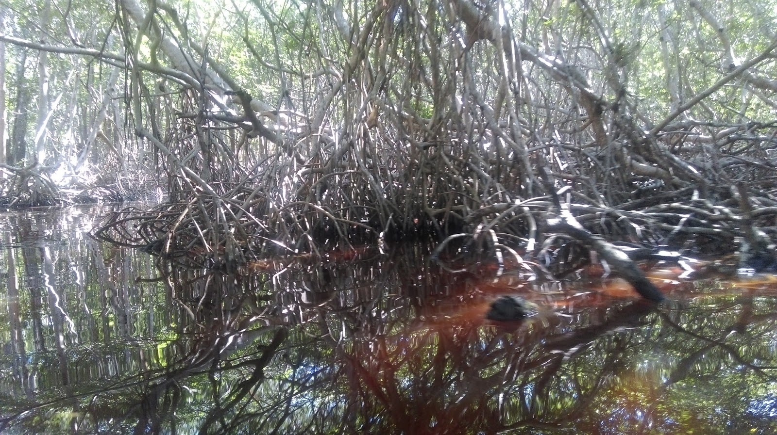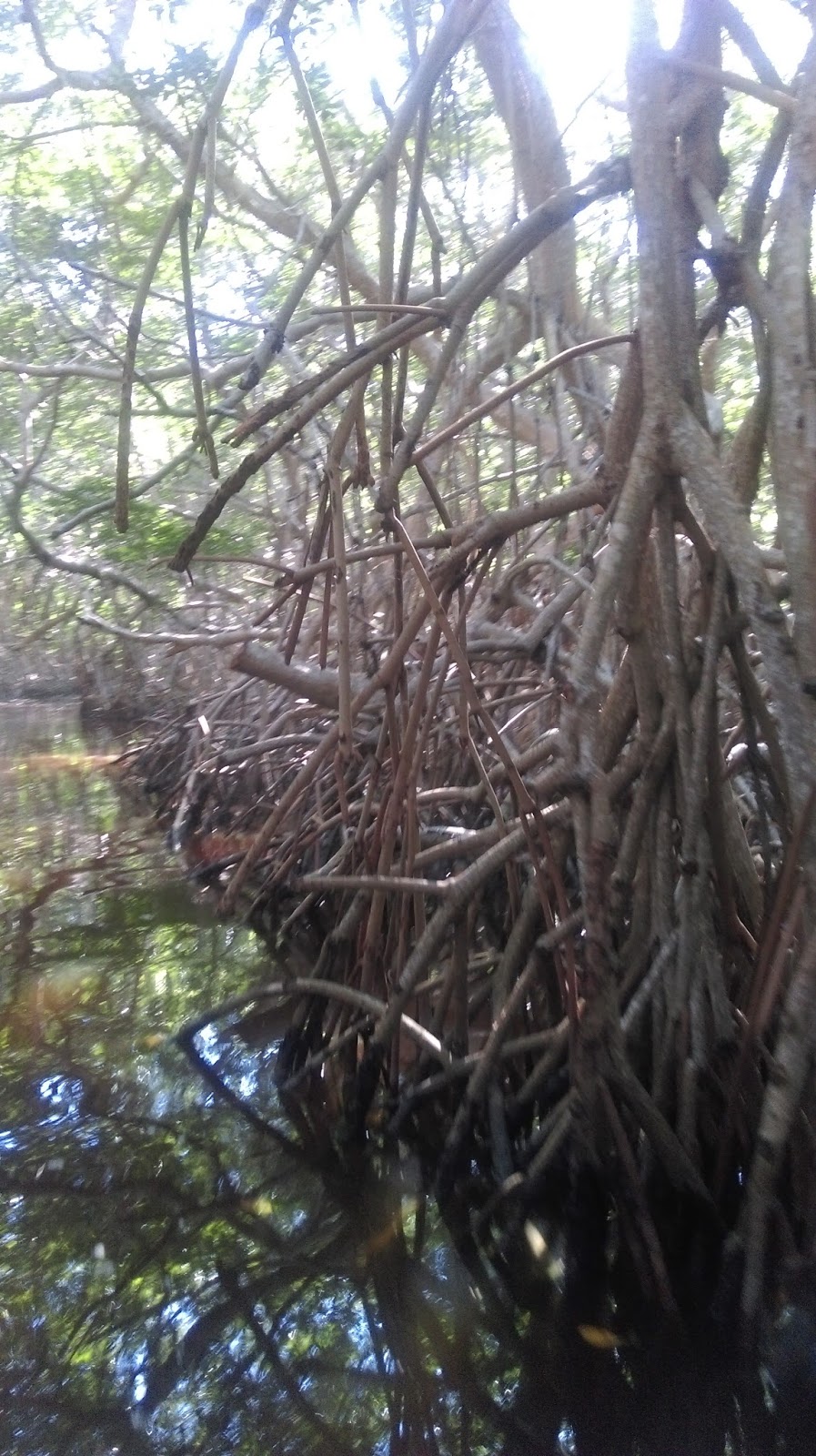 Dalje nas vozi kroz mangrove sume,  visoko strkljavo korijenje izniklo je po svuda. Na kraju setamo do mjesta gdje izvire voda oz podzemlja, u stijenama pod vodom…nije cenote, nego samo izvor. Nije sigurno za kupanje radi krokodila, iako ja nisam vidjela ni jednog.