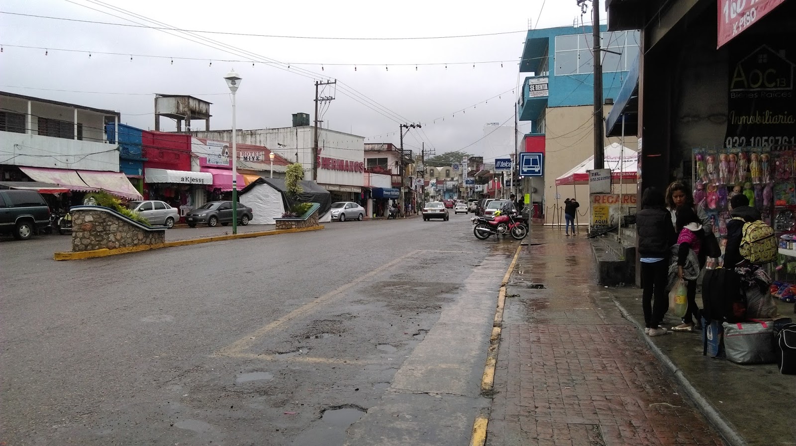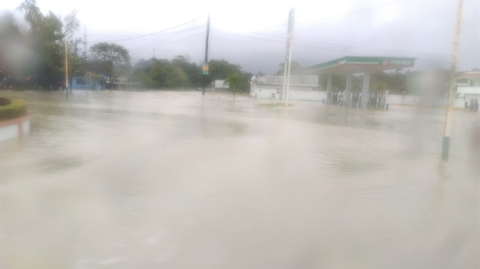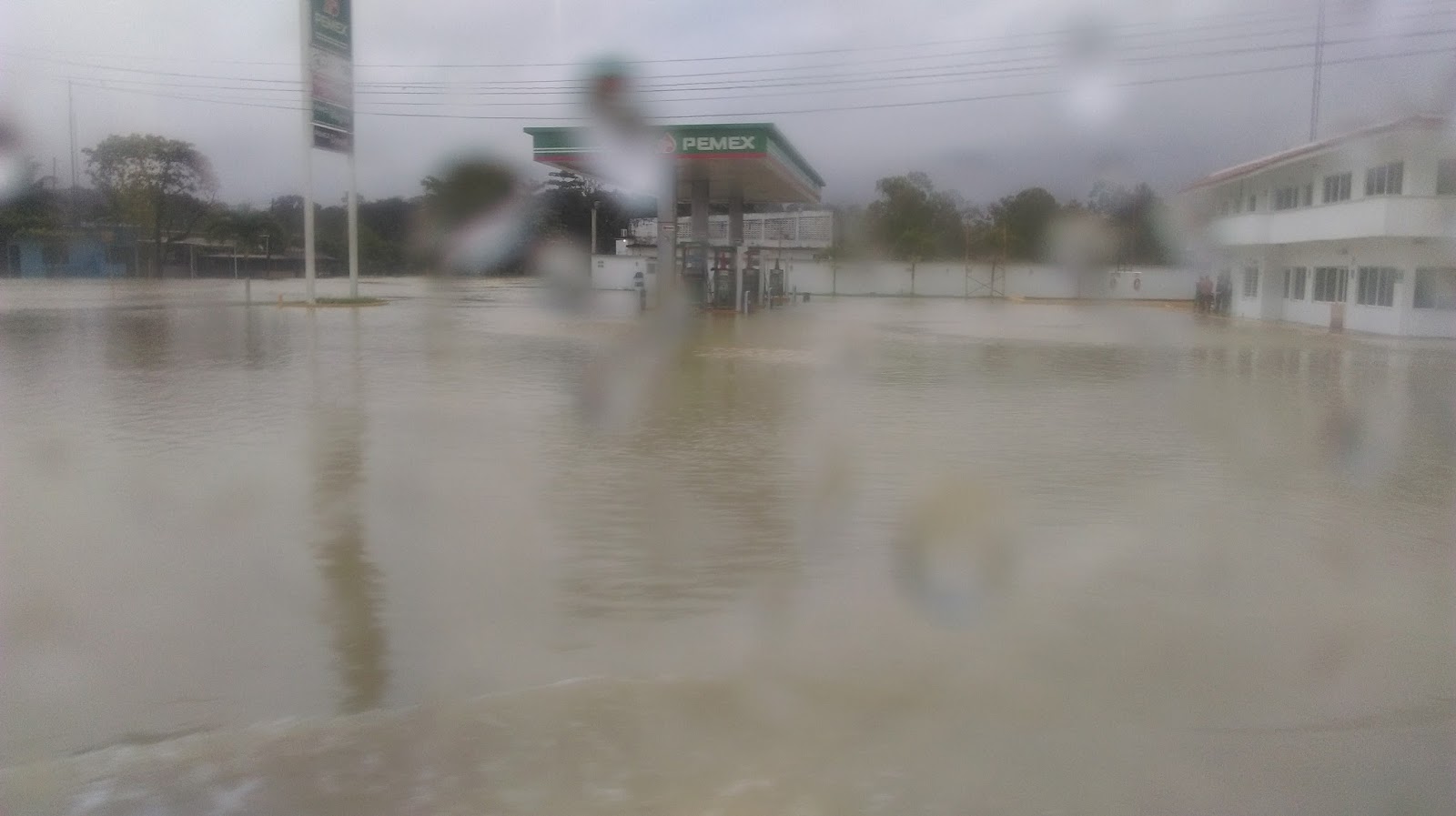 Okrecem robu da se jos prosusi, ali sve je jako mokro, pokusavam upalit mob koji se smocio, ali bezuspjesno, i vracam se natrag u krevet, danas cu lagani tempo jer me ono jucer ubilo, toliko sam promrzla kroz mokru robu da sam mislila da mi ne gine prehlada….ali dobro sam, malo me glava boli od ventilatora, valjda neki adrenalin me drzi da se ne razbolim. Napokon oko 8 pakiram prnje i idem na kolodvor. Kolektivo ne vozi jer je sve poplavljeno. Voze samo autobusi. Kuce su u vodi, pumpa pod vodom, cesta potopljena, sve se bojim da ni bus nece moci proci kroz tu vodu. Kisa nemilice pada od jucer ujutro i rijeke su se izlile, a ocito ima kanali ne mogu primiti toliko vode. Bolje da idem dalje. Nisam se htjela vratiti u Villahermosu pa ulovit direkt bus za Palenque, nego sam odlucila mijenjat kolektivo i doci lokalnim putem do Palenquea, malo razgledat pokrajine Chiapas i Tobasco kroz koje vodi put.