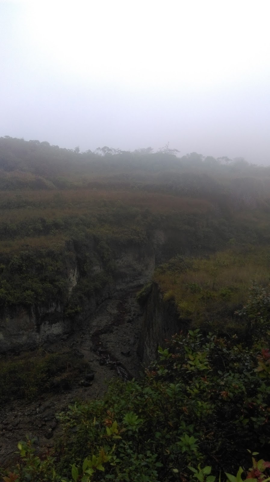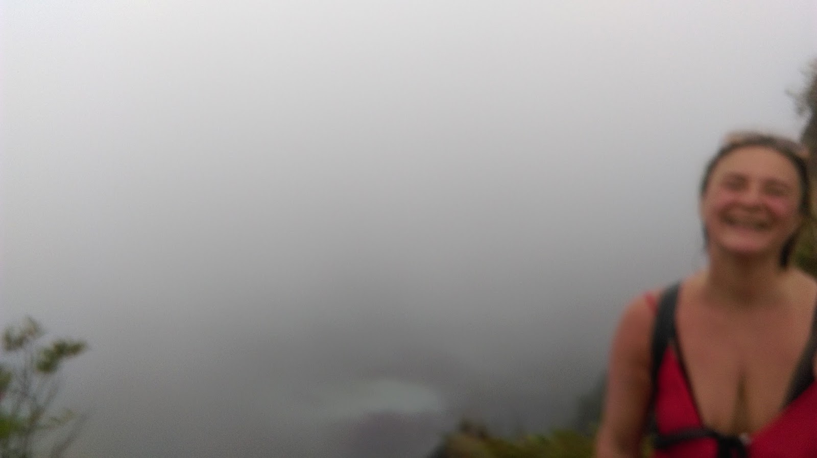 Uspijevamo se uspeti do vrha ali krater se ne vidi. Napon smo na vrhu kod kratera a krater je pun oblaka i samo na koju min se dizu oblaci i vidim jezero.