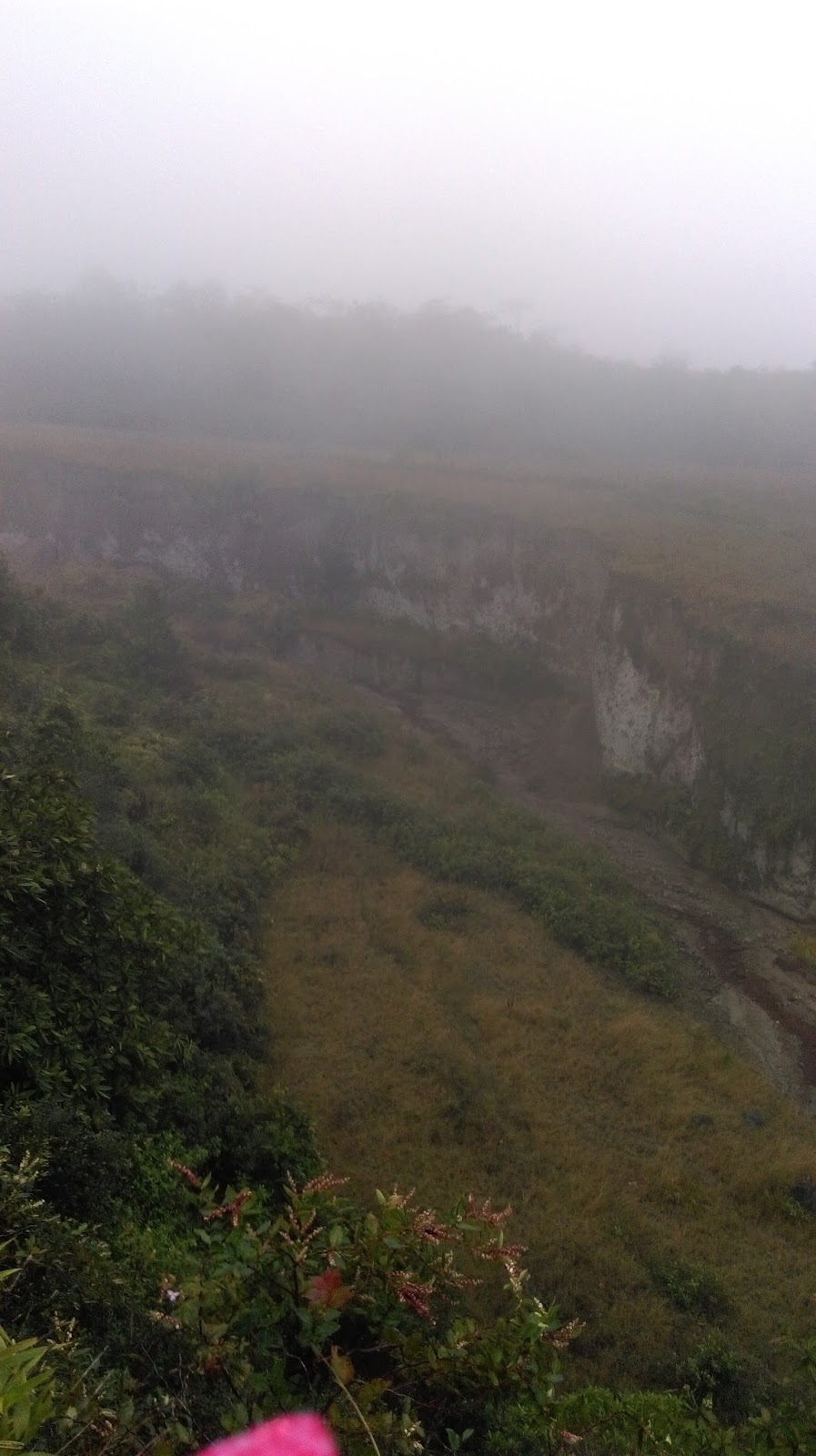 U kamioncicu sam upoznala par iz Mexica koji se isto penje,i dogovorili smo se da idemo skupa, on cak zna malo i engleski pa se razgovaramo. Putem nas prati kisa pa se smiri, i sve si mislim razvedrit ce se kao i inace, kad ono pada sve jace. Tropsku sumu zamijenila je sekundarna vegetacija nastala nakon erupcije vulkana, grmlje, biljke, cvijece. Pit ide kroz polja di smo se u jednom trenutku morali pocet derat jer je bik poceo ici prema nama, a ja sam naravno kao prava ovca imala na sebi crveni kombinezon, taman da bik jos vise popizdi. Penjemo se dalje al nikad kraja, a kisa sve vise lijeva, sad vise ne pomaze ni kisobran, noge su mi mokre, kombinezon mi je mokar, ali picimo dalje.