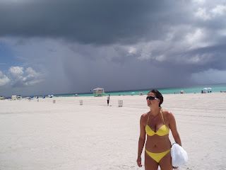 Ujutro se spuštamo na doručak, koji je bio super, tostići, mafini,namazi, jaja, voće, i najbolji dio aparat za vafle, koje si sam radiš, i to s javorovim sirupom, mljac, i narvno kavica i limunada na terasi, iako je terasa zajeb jer je već u rano jutro toliko vruće i sparno da je bolje uživat u pogledu iz svježeg i klimatiziranog hotela. Nakon dobrog doručka uzimamo svoje ležaljke i bacamo se na plažu, plaža od bijelog pijeska, svuda okolo slikovite baywatcheve kućice, samo fali Mitch da izleti i da mu se one frčke počnu vijorit na vjetru. E opet ko na filmu, ma Amerika je cijela film( nije ni čudo kad gledam samo njihove filmove) Ocean super topli osjećaj mrak, ako na Karibima ( skoro da i jesu) , more čisto prozirno, jedino sam se stalno zgledavala da ne bi naletila neka peraja i s njom morski cucak. Nema zato ronjenja s zatvorenim očima pa makar i peklo! Al skroz je sigurno, Mitch gleda iz kućice, patroliraju čamci i helikopteri, samo pusti ti to bolje da i ja patroliram. A koje prženje tu ti je dosta 2 dana da dođeš ko crnac doma, no u neko doba oko 1 se počnu navlačit oblaci i dok nisi ni skužio počinje tropski plusak, al ekipa opće ne reagira, spermi stvari u najlonske vrećice i dok plušti ode u more, pa kad oni tako tako i mi.