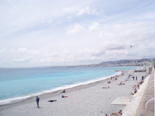 Puno je ljudi , svi ljenčare na terasama uz kavicu na suncu, u pekarama sendviči od tune boli glava -ko avioni, pa svakakvih slatkih kolača i peciva- i to smo morali isprobat. Škvadra stoji u redu da bi probala neke njihove specijalitete ko kajgana u ogromnoj tavi se peče. Tržnica s ribom, nepregledna plaža, fancy hoteli u vilama iz 19 stoljeća- super. Mislim da bi za Nicu trebalo par dana a ne par sati