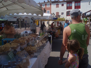 Taman se održavao neki sajam lokalnih specijaliteta i obrta pa je sve bilo puno štandova sa pekmezićima, namazima, terinama, maslinovim uljem… Malo smo degustirali, kupili neki namaz od inćuna ( 4 eura), malo maslinovog ulja( 2dl 5 eura), octa s tartufima ( 2dl 5 eura)- cijene i dalje paprene. Mjesto je lijepo – ulazi se preko mosta kroz vrata- auti ne smiju unutra osim stanara, kuće su niske relativno nove s malim vrtekima – svaka na moru a pred njima parkirane jahte.Pročitala sam da je mjesto izgrađeno 1960. na močvarnom tlu pa zato ima puno mostića. Neki su dijelovi zatvoreni jer su tamo privatni posjedi što je šteta jer ima krasnih kuća. Uglavnom mjestašce je ok, nema velike gužve na glavnom trgu su restorani s terasama a možete doći i brodom.