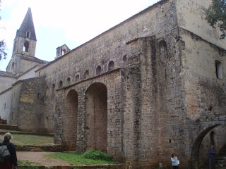 Građena je u 12 st. u stilu romanike i piše da plijeni svojom jednostavnošću. Moram priznat da me više oduševila priroda uokolo nego opatija. Jedino je lijepo dvorište u središtu. Čini mi se da se to kaže klostar???